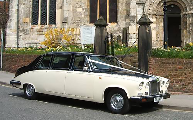 The Daimler State Limousine or DS420 is known as "the last of the true limousines". Hand built in the UK between 1968 and 1993; these cars were a popular choice for Royalty, Diplomats, bespoke limousine use and wedding hire. To this day the British Royal Family have several, recently seen at William and Kate’s wedding, they are fantastic bridal cars but really come into their own for carrying the remainder of the bridal party. They are equipped to carry up to 7 passengers with a large boot for stowing any baggage or extras needed for the wedding. Now a very rare vehicle, we are pleased to have 3 of the finest examples in colours that compliment the rest of the fleet. Our black and ivory car is a perfect match with our ivory Beauford and has a beautiful grey leather interior with glass division to the driver’s side. | |