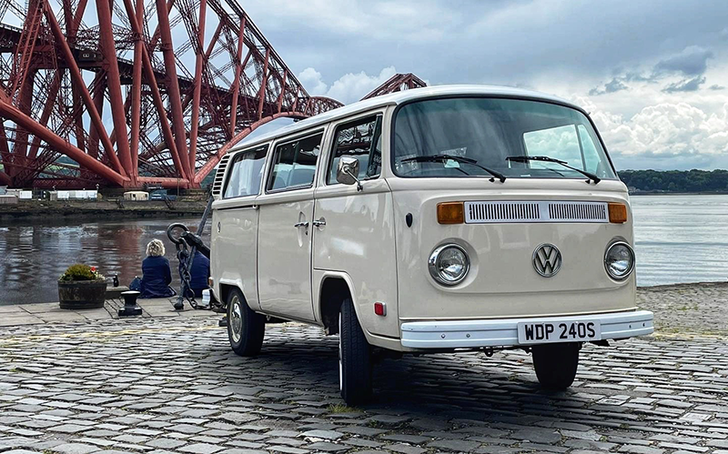Nothing says “fun” at a wedding like a Vintage VW Camper! Not only are these quirky machines great fun they are actually very practical, in “deluxe microbus” specification like our late bay window model they can comfortably carry up to 7 passengers, all front faint and with reasonable space for luggage. |